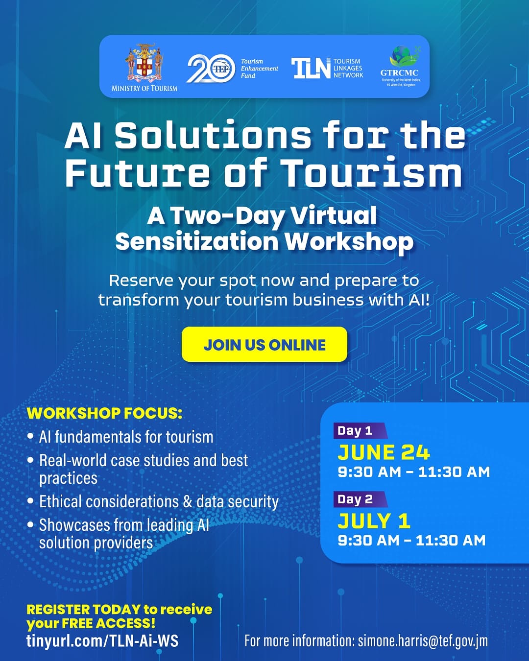 Whether youβre looking to boost efficiency, improve guest experiences, or stay ahead of the curveβthis workshop is your gateway to the future of Jamaican tourism.